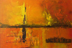 Schilderijen van landschappen, steden en mensen in geabstraheerde vorm